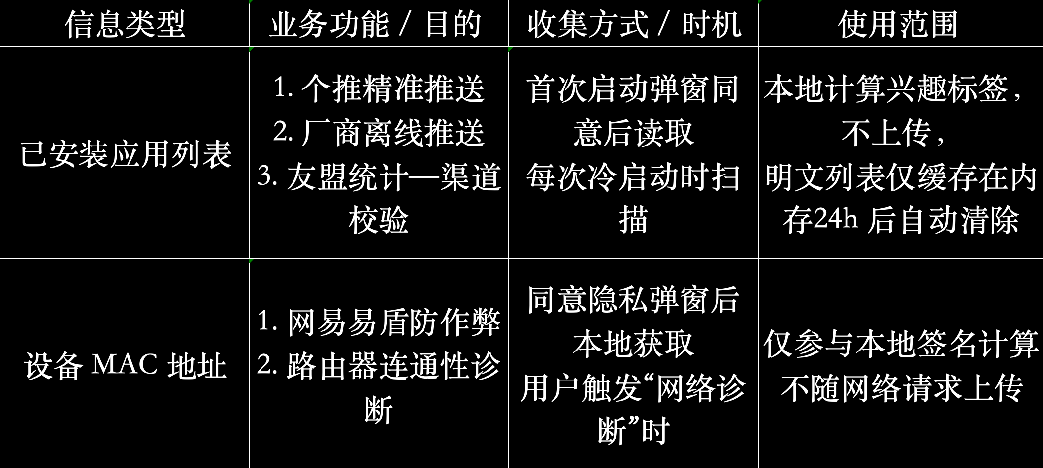 (4)基于各大手机厂商的推送SDK:为实现各大安卓手机厂商离线推送通知,我们集成基于手机厂商的推送SDK(小米、魅族、华为、OPPO、vivo)(涉及个人信息:设备信息(IMEI、ANDROID_ID、DEVICE_ID、IMSI)、应用已安装列表、网络信息)华为HMS PUSH推送隐私政策